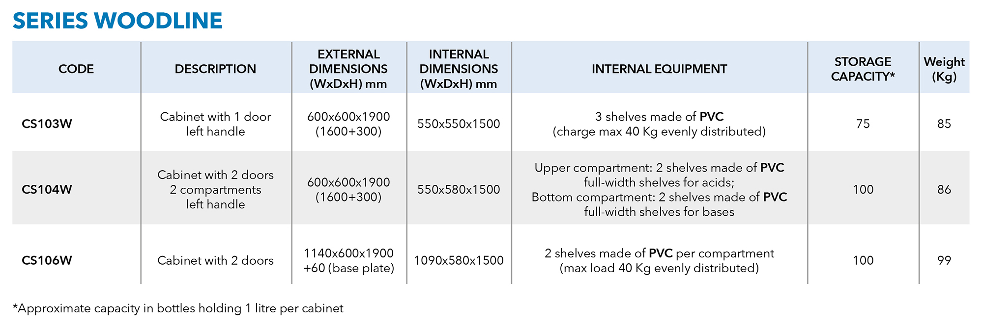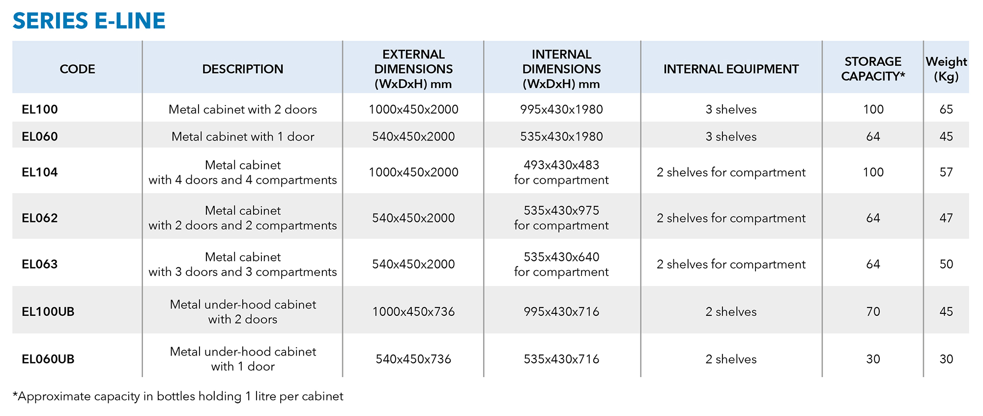 • E-LINE Series: A versatile, economical solution for the safe storage of polluting, toxic, and hazardous products.