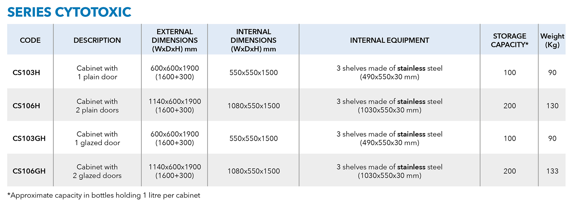 • CYTOTOXIC Series: Specifically designed for the secure storage of cytotoxic products used in chemotherapy.