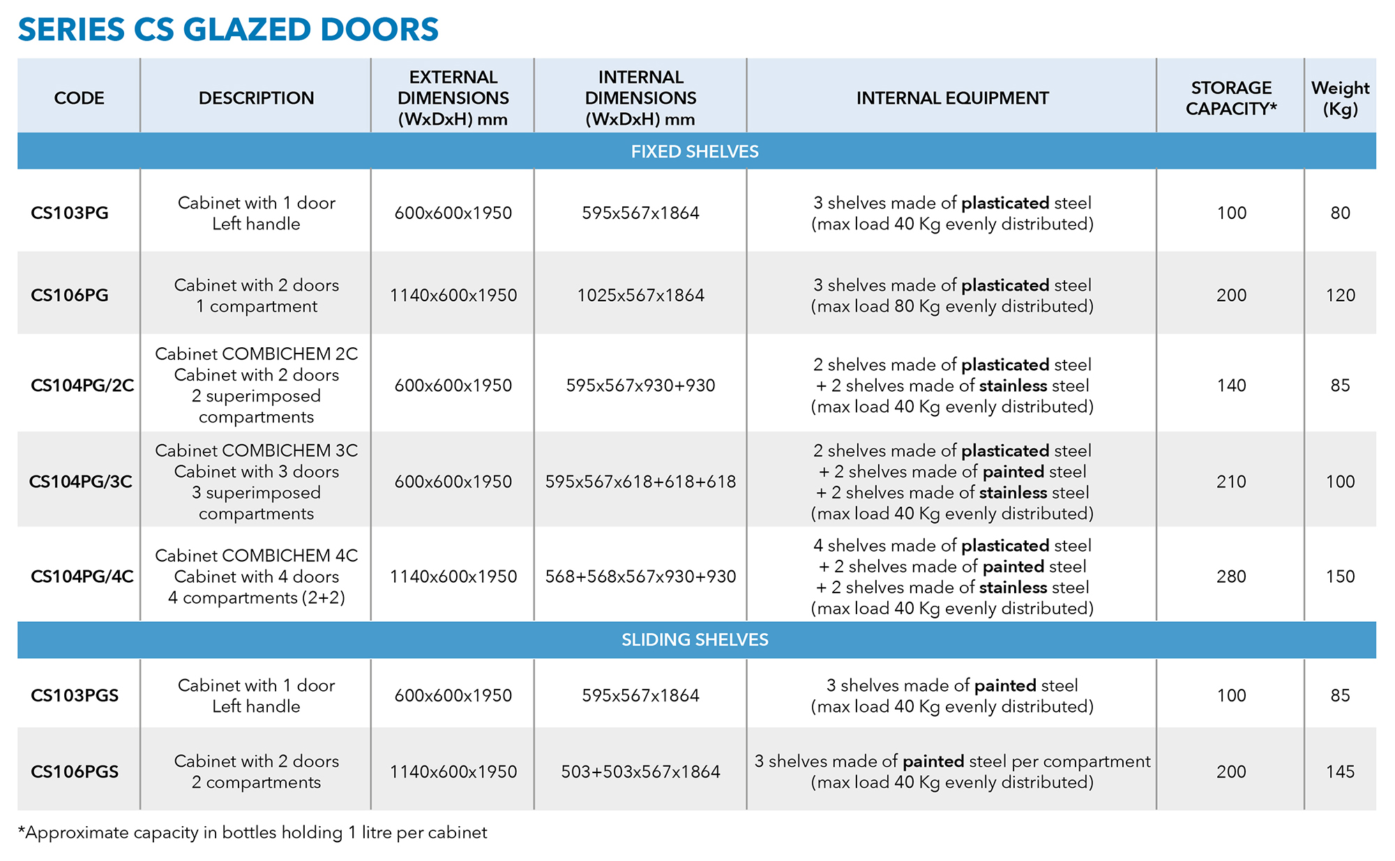 • CS Series: Available with closed or glass doors for flexible storage visibility and access.