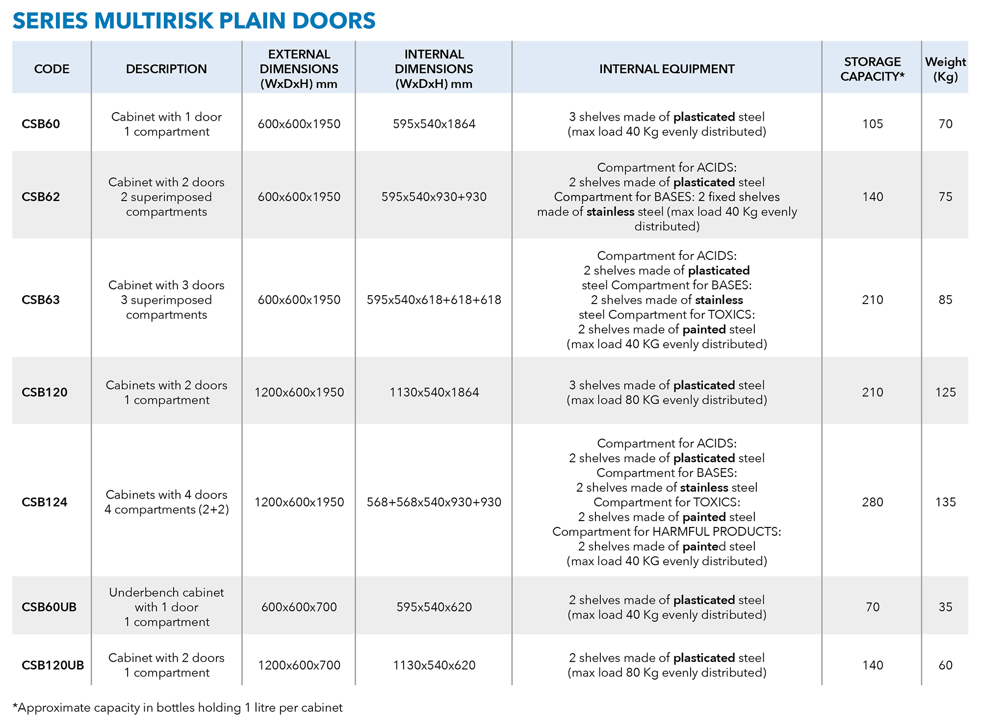 • MULTIRISK Series: Built for multi-hazard storage, accommodating diverse types of chemicals in a single cabinet.